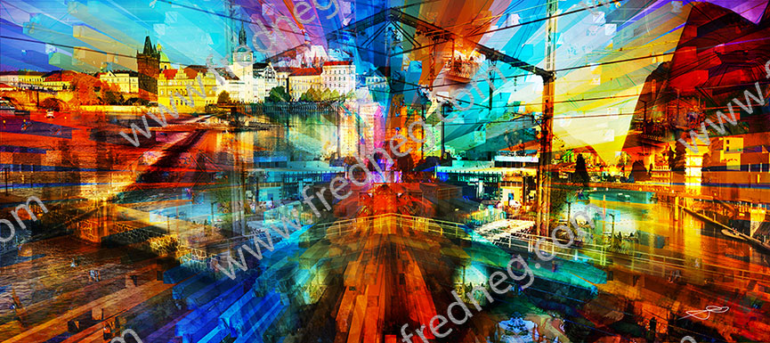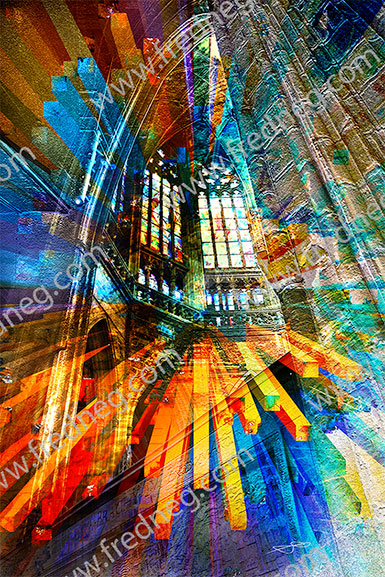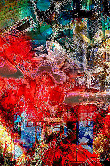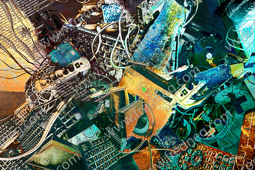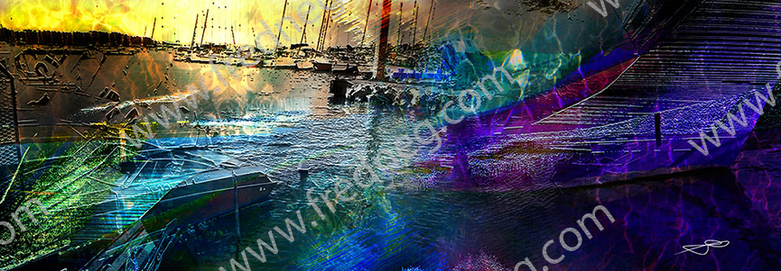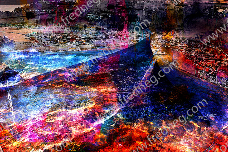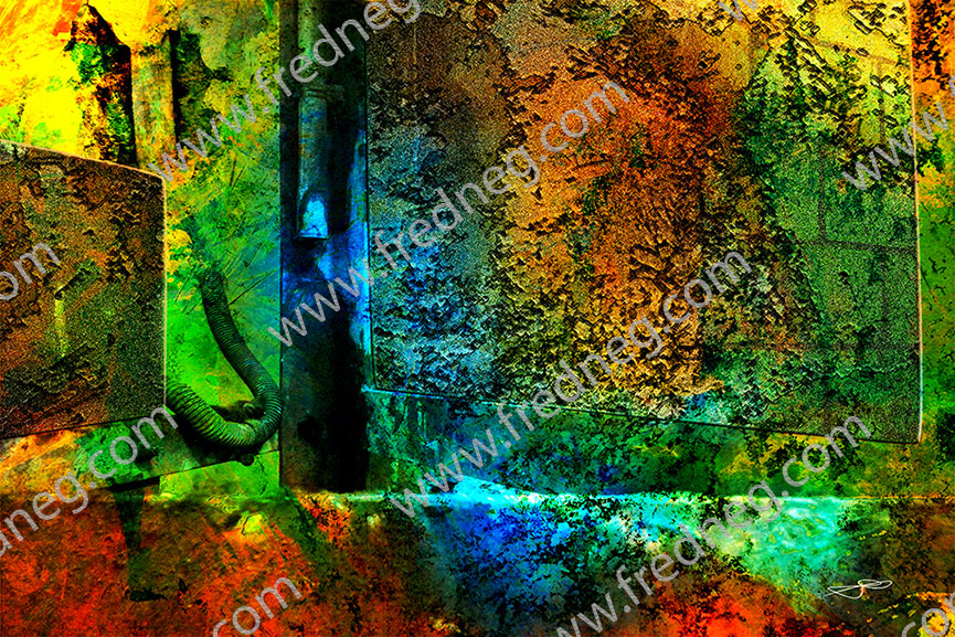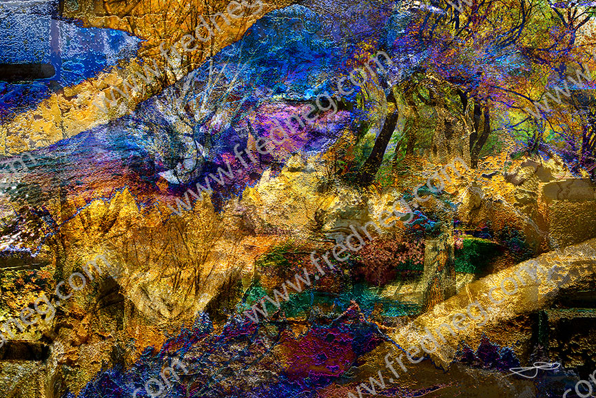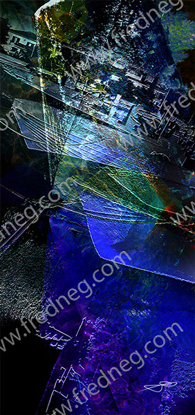 Through those digital paintings, I wanted to express the power of the atomic reaction hidden behind an apparent inertia. The energy released from the natural elementary strengths at each moment of change free from human interference in order to reveal a kind of scintillating beauty made of a thousand sparks and gold powder particles.