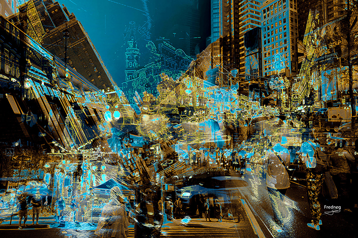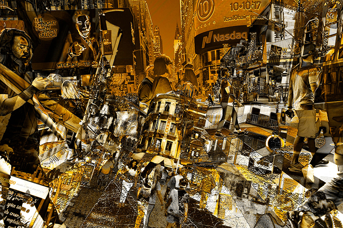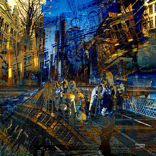 A l’image de la statue de la liberté éclairant le monde, New-York du haut de sa puissance économique, influence les métropoles de la planète, s’impose comme modèle et détermine nos modes de vie sans laisser de place à l'alternative. Et dans cette agitation ininterrompue de lumières, sons, bruits, senteurs mêlées, d’improbables rencontres surgissent spontanément, le temps d’un regard croisé, d’un sourire échangé, nous connectent à nos origines et nous rappellent notre condition humaine, comme signe d'une appartenance universelle.